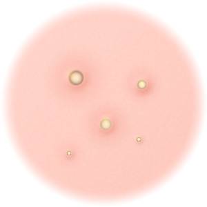 흔히 뾰루지로 불리며, 면포성 여드름에서 진행된 단계로 염증을 동반하고 있습니다. 붉은색의 형태로 고름이 있지만