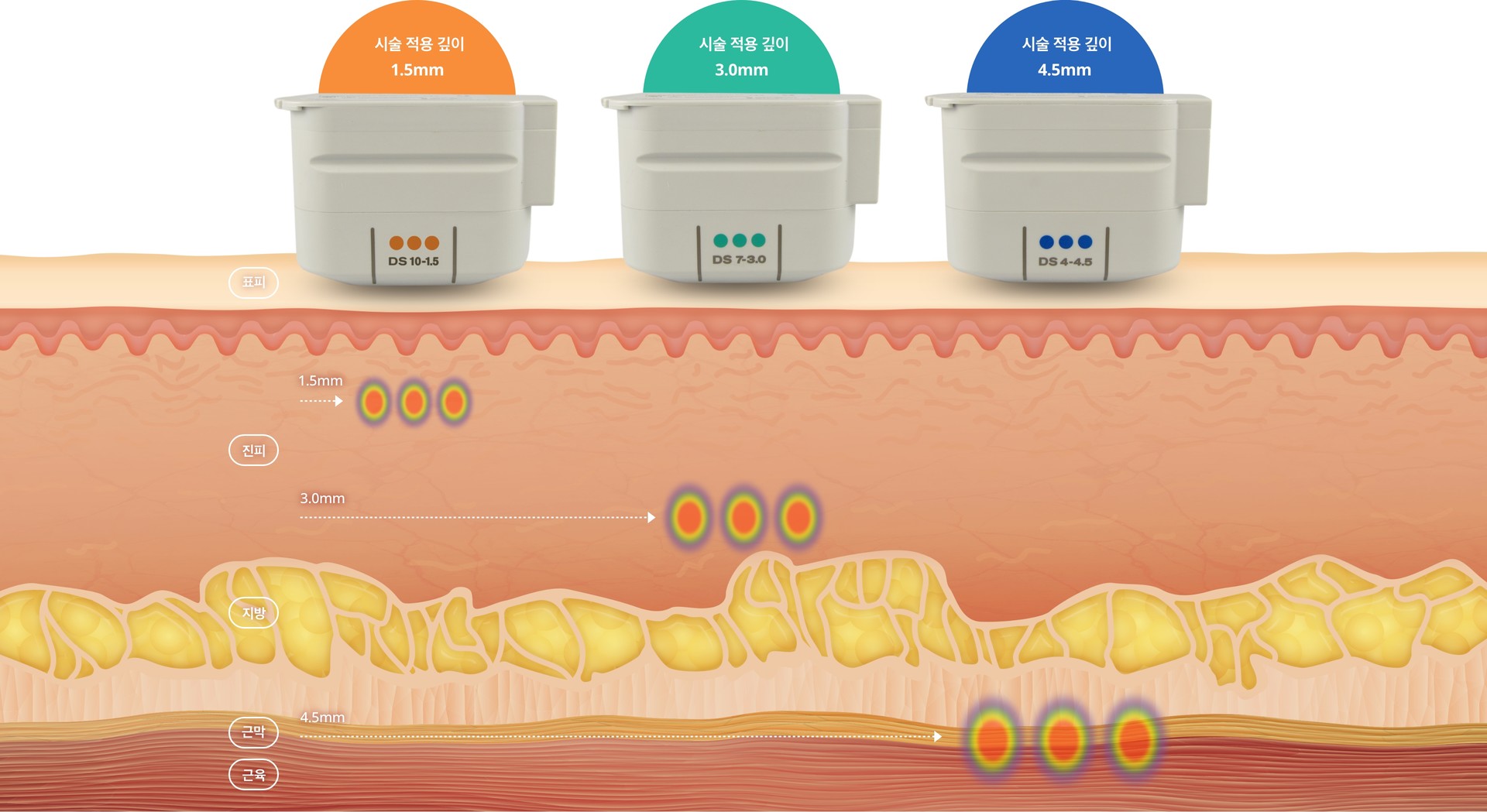 진피층(3.0mm, 4.5mm)에